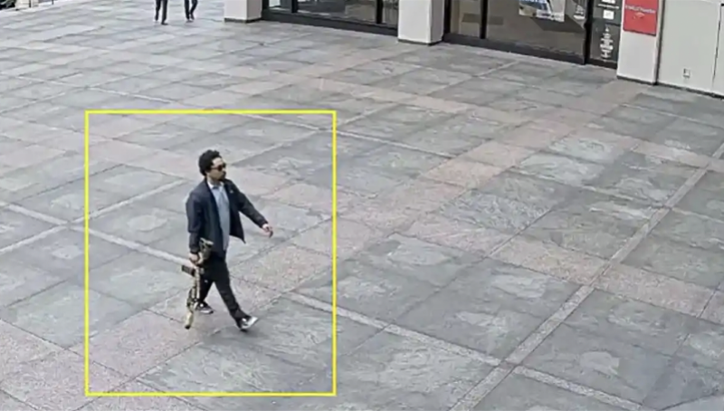 监控摄像头捕捉到枪手出现在大楼外的画面。