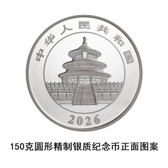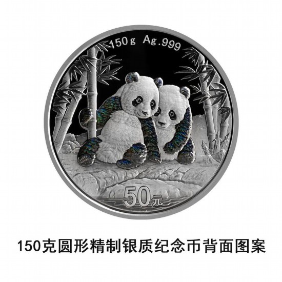150克圆形银质纪念币为精制币,含纯银150克,直径70毫米,面额50元,成色99.9%,最大发行量30000枚。