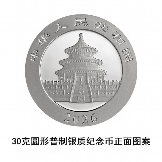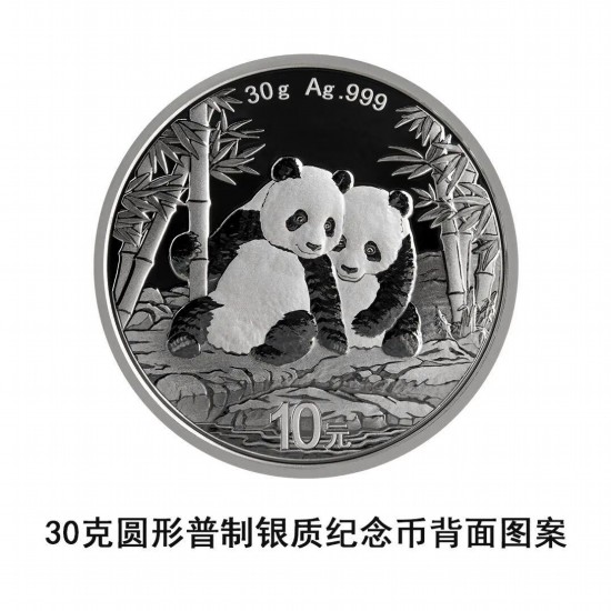 30克圆形银质纪念币为普制币,含纯银30克,直径40毫米,面额10元,成色99.9%,最大发行量5000000枚。