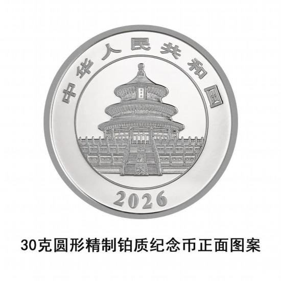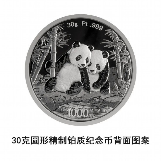 30克圆形铂质纪念币为精制币,含纯铂30克,直径32毫米,面额1000元,成色99.9%,最大发行量10000枚。