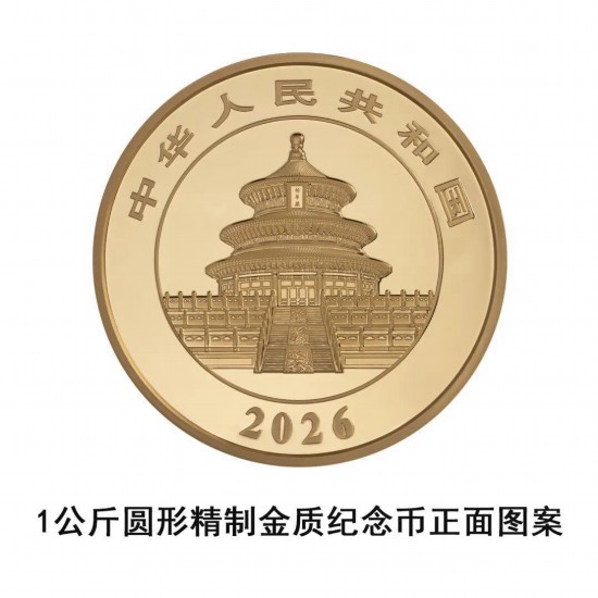 1公斤圆形金质纪念币为精制币,含纯金1公斤,直径90毫米,面额10000元,成色99.9%,最大发行量2000枚。