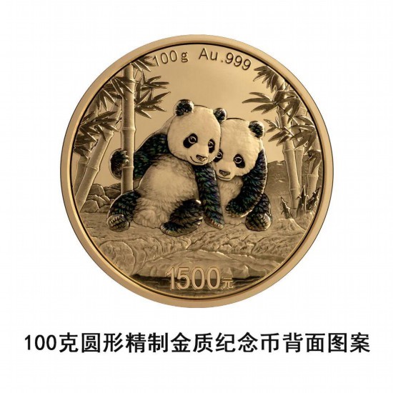 100克圆形金质纪念币为精制币,含纯金100克,直径55毫米,面额1500元,成色99.9%,最大发行量30000枚。