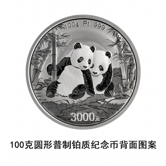 100克圆形铂质纪念币为普制币,含纯铂100克,直径55毫米,面额3000元,成色99.9%,最大发行量2000枚。