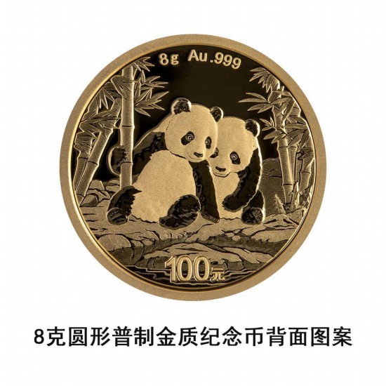8克圆形金质纪念币为普制币,含纯金8克,直径22毫米,面额100元,成色99.9%,最大发行量200000枚。